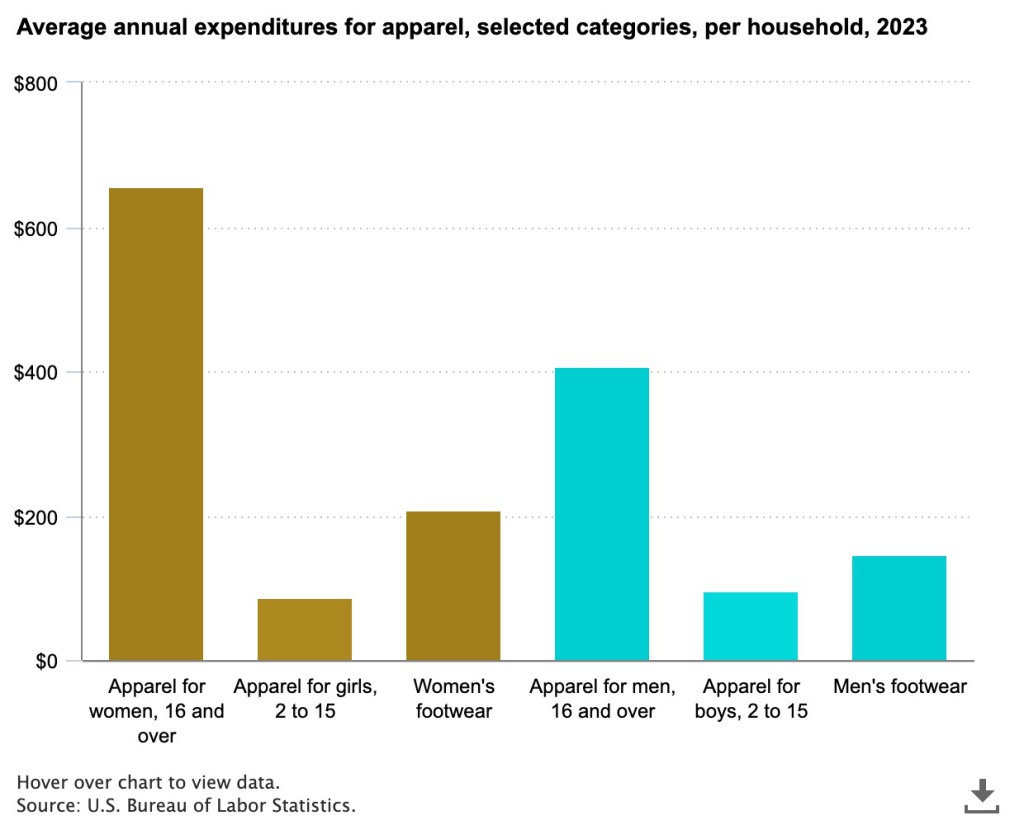 According to the U.S. Bureau of Labor Statics, the average American can spend anywhere from eighty-seven dollars to six hundred and fifty five dollars a year on a range of apparel. Cutting that unnecessary expense can help lead families to saving thousands of dollars a year, while breaking down the toxic fashion standard that our society continues to uphold.